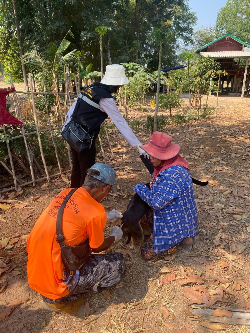 สำนักปลัด เทศบาลตำบลโนนสูง ร่วมกับ ปศุสัตว์อำเภอยางตลาด ผู้ใหญ่บ้านและผู้ช่วยผู้ใหญ่บ้าน หมู่ที่ 6 ออกฉีดวัคซีนป้องกันโรคพิษสุนัขบ้า ให้กับสุนัขที่มีเจ้าของและไม่มีเจ้าของ ณ บ้านนางาม หมู่ที่ 6 และบ้านโนนสูง หมู่ที่ 7