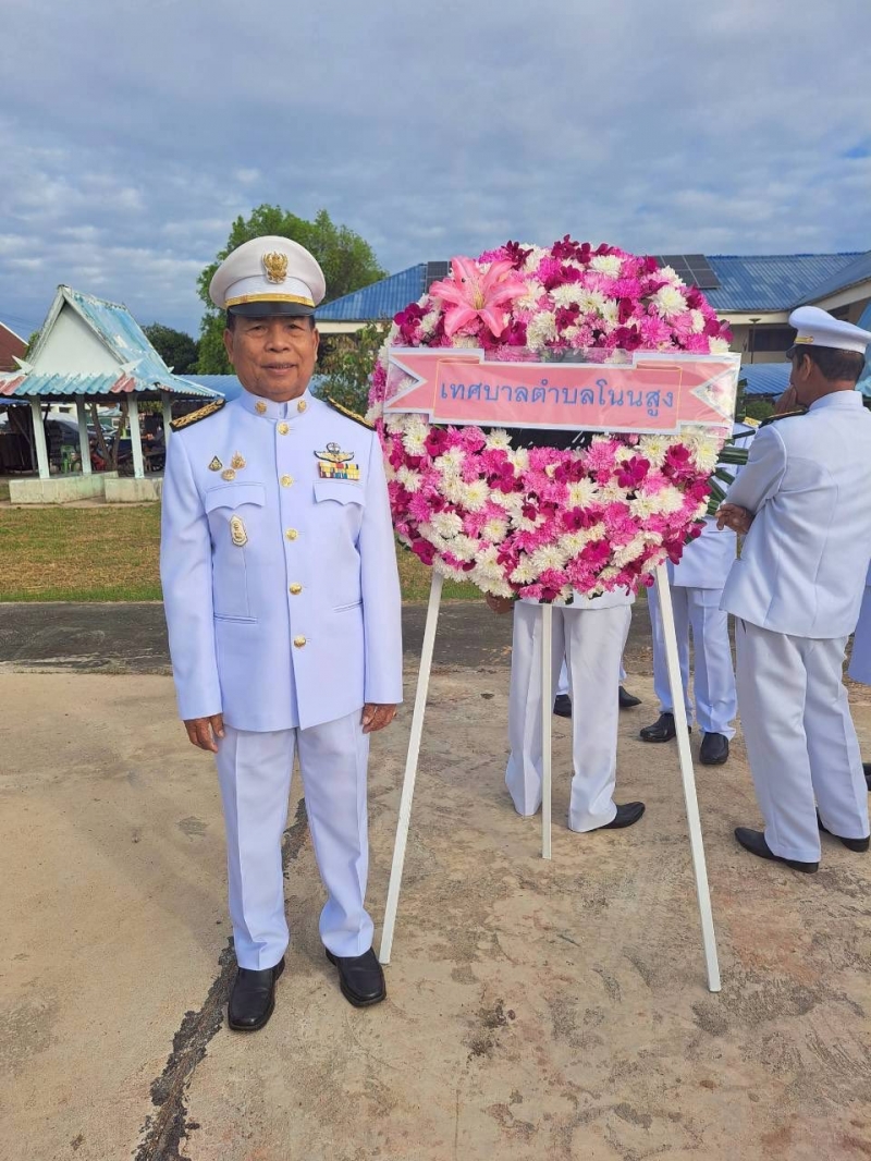 นายเตียง ภูพลผัน นายกเทศมนตรีตำบลโนนสูง พร้อมด้วยคณะผู้บริหาร สมาชิกสภาเทศบาล ปลัดเทศบาล หัวหน้าส่วนราชการ พนักงานเทศบาล พนักงานครูเทศบาล และพนักงานจ้าง เทศบาลตำบลโนนสูง ร่วมพิธีวางพวงมาลาถวายราชสักการะพระบรมราชานุสาวรีย์ พระบาทสมเด็จพระจุลจอมเกล้าเจ้าอยู่หัว เพื่อน้อมรำลึกในพระมหากรุณาธิคุณเนื่องในวันคล้ายวันสวรรคต พระบาทสมเด็จพระจุลจอมเกล้าเจ้าอยู่หัว 23 ตุลาคม 2568 ณ บริเวณพระบรมราชานุสาวรีย์ พระบาทสมเด็จพระจุลจอมเกล้าเจ้าอยู่หัว สนามที่ว่าการอำเภอยางตลาด