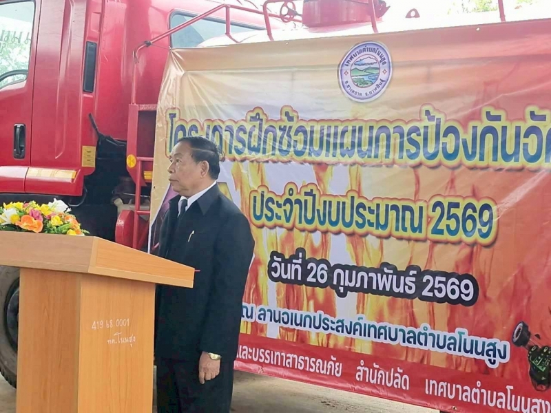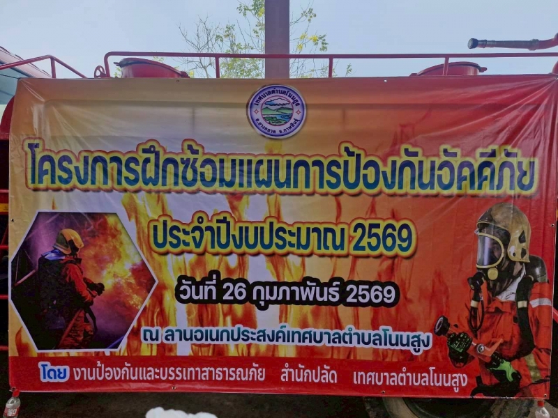ร่วมกับกำนันตำบลโนนสูง ผู้ใหญ่บ้าน ผู้ช่วยผู้ใหญ่บ้าน สารวัตรกำนัน อาสาสมัครป้องกันภัยฝ่ายพลเรือน (อปพร.) จิตอาสา และประชาชนทั่วไป ดำเนินโครงการฝึกซ้อมแผนการป้องกันอัคคีภัย ประจำปีงบประมาณ 2569 ณ ลานอเนกประสงค์สำนักงานเทศบาลตำบลโนนสูง อำเภอยางตลาด จังหวัดกาฬสินธุ์