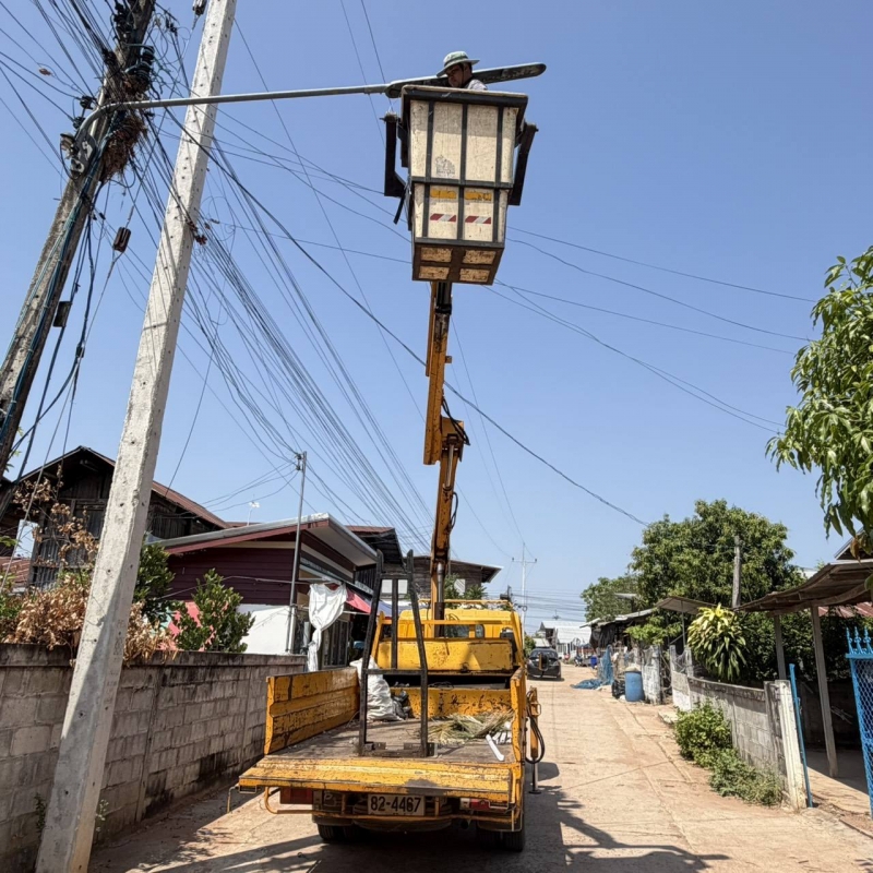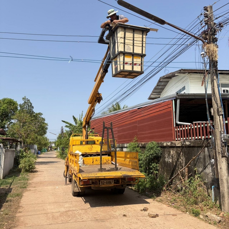 16 มีนาคม 2569 กองช่าง นำรถกระเช้าออกซ่อมแซมไฟฟ้าส่องสว่างสาธารณะ