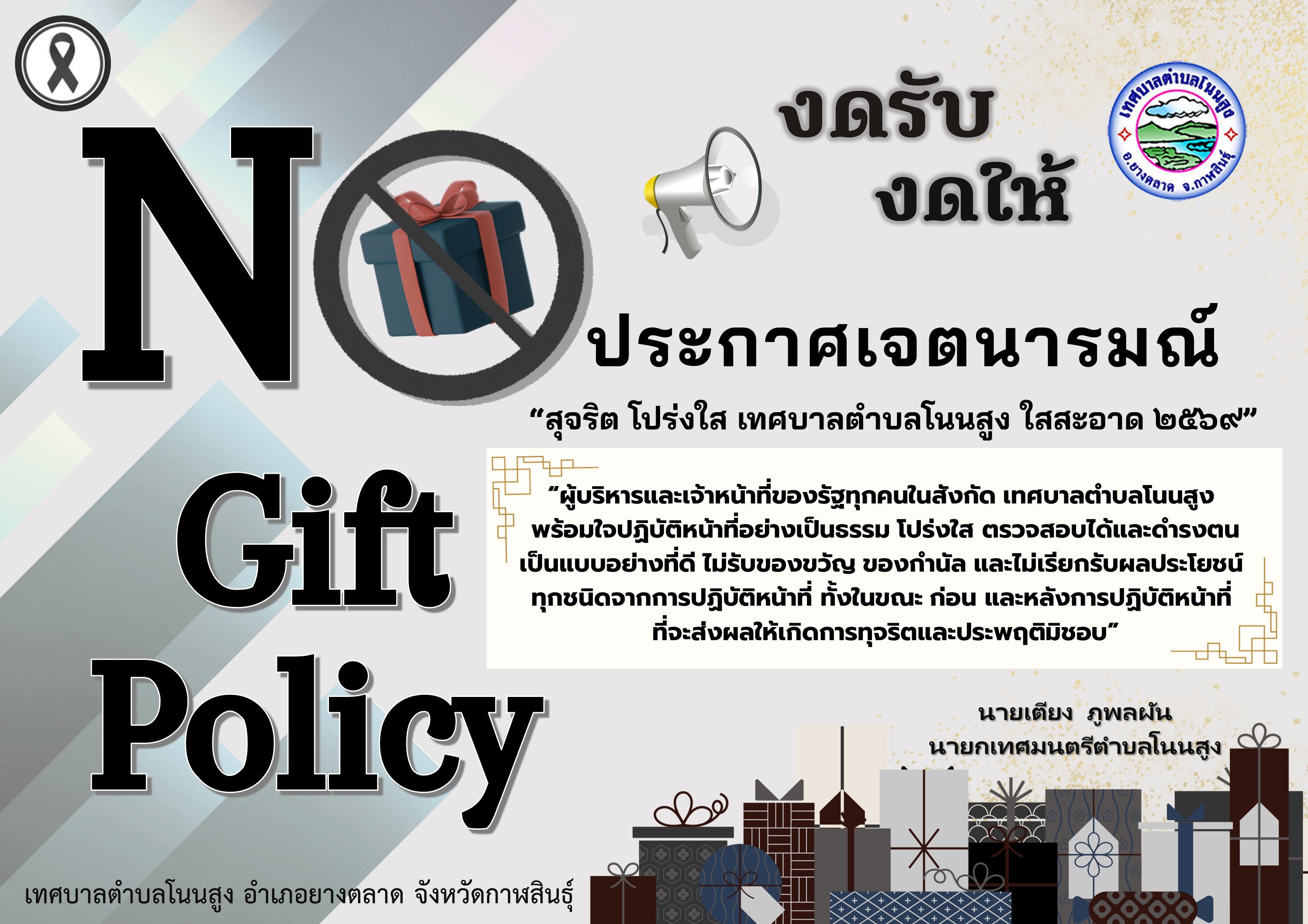 ประกาศเจตนารมณ์ สุจริต โปร่งใส เทศบาลตำบลโนนสูง ใ...