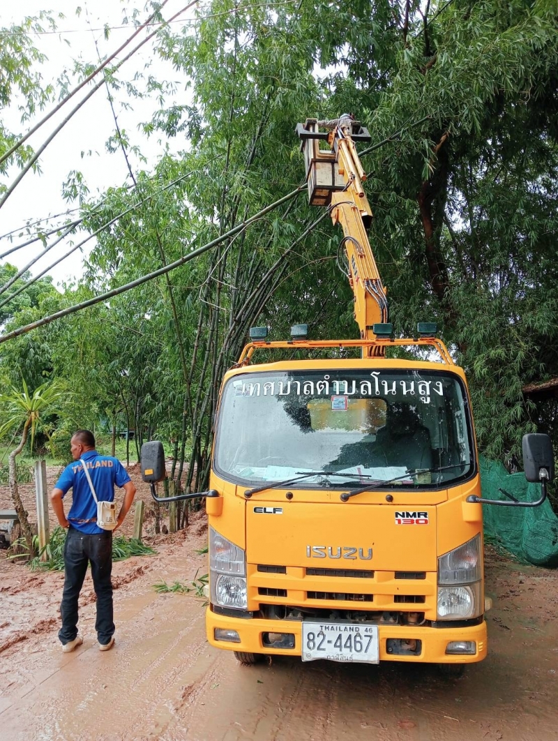 นายเตียง ภูพลผัน นายกเทศมนตรีตำบลโนนสูง มอบหมายให้เจ้าหน้าที่กองช่าง ลงพื้นที่ตัดกิ่งไม้ล้มทับทาง หมู่ที่ 3 และกิ่งไม้ที่วัดอุดมผลหนองไผ่ ตำบลโนนสูง อำเภอยางตลาด จังหวัดกาฬสินธุ์