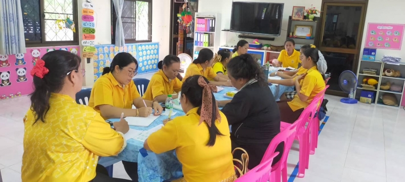 กองการศึกษา เทศบาลตําบลโนนสูง ประชุมประจำเดือนเพื่อปรึกษาแผนงานและแนวทางการปฏิบัติงานในด้านต่างๆ ณ ศูนย์พัฒนาเด็กเล็กบ้านโพนสวาง