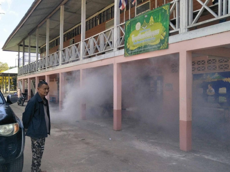 งานป้องกันและบรรเทาสาธารณภัย สำนักปลัด เทศบาลตำบลโนนสูง ร่วมกับรพ.สต.โนนสูง ออกพ่นหมอกควันกำจัดยุงลาย ณ บ้านโพนสวาง หมู่ที่ 11 และโรงเรียนหนองไผ่รัฐบำรุง