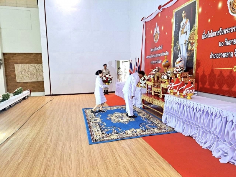 นายเตียง ภูพลผัน นายกเทศมนตรีตำบลโนนสูง พร้อมด้วยคณะผู้บริหาร ประธานสภา รองประธานสภา สมาชิกสภาเทศบาลตำบลโนนสูง ปลัดเทศบาล หัวหน้าส่วนราชการ พนักงานเทศบาล พนักงานครู และพนักงานจ้าง สังกัดเทศบาลตำบลโนนสูง ร่วมกิจกรรมเฉลิมพระเกียรติพระบาทสมเด็จพระปรเมนทรมหาอานันทมหิดล พระอัฐมรามาธิบดินทร วางพานพุ่มดอกไม้ ถวายราชสักการะ เนื่องในโอกาสวันพระบรมราชสมภพครบ 100 ปี 20 กันยายน 2568 ณ หอประชุมอำเภอยางตลาด จังหวัดกาฬสินธุ์