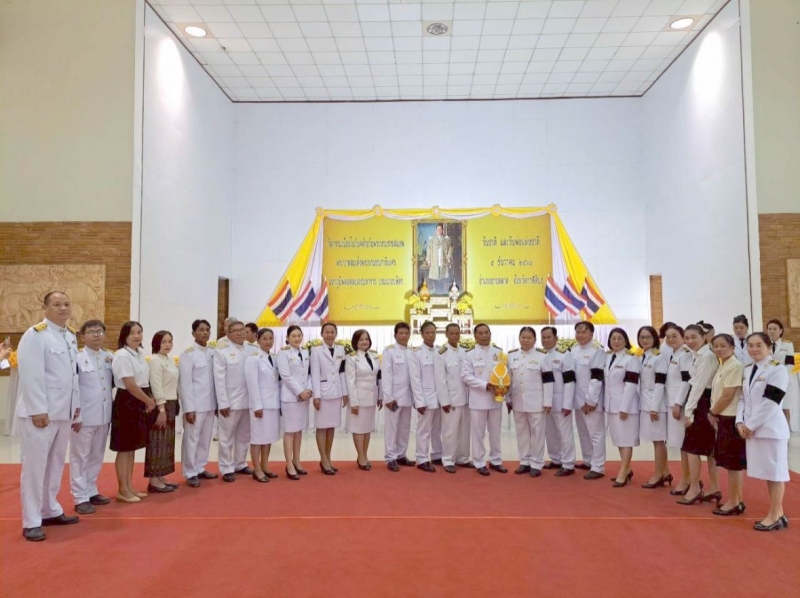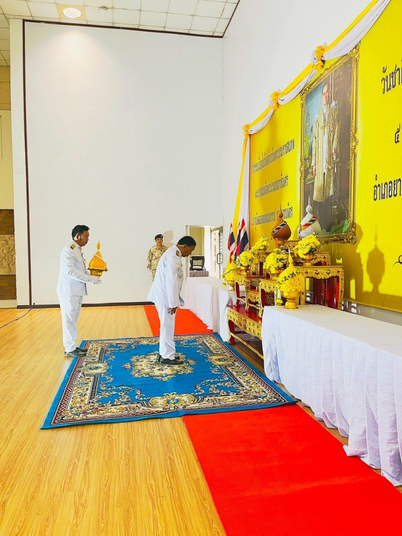 นายเตียง ภูพลผัน นายกเทศมนตรีตำบลโนนสูง พร้อมด้วยคณะผู้บริหาร สมาชิกสภาเทศบาล ปลัดเทศบาล หัวหน้าส่วนราชการ พนักงานเทศบาล พนักงานครูเทศบาล และพนักงานจ้าง เทศบาลตำบลโนนสูง ร่วมพิธีวางพานพุ่มดอกไม้ถวายราชสักการะ หน้าพระบรมฉายาลักษณ์พระบาทสมเด็จพระบรมชนกาธิเบศร มหาภูมิพลอดุลยเดชมหาราช บรมนาถบพิตร เนื่องในคล้ายวันพระบรมราชสมภพ พระบาทสมเด็จพระบรมชนกาธิเบศร มหาภูมิพลอดุลยเดชมหาราช บรมนาถบพิตร วันชาติ และวันพ่อแห่งชาติ 5 ธันวาคม 2568 เพื่อเป็นการน้อมรำลึกถึงพระมหากรุณาธิคุณในพระบาทสมเด็จพระบรมชนกาธิเบศร มหาภูมิพลอดุลยเดชมหาราช บรมนาถบพิตร ที่ทรงมีต่อปวงชนชาวไทยเป็นล้นพ้นอย่างหาที่สุดมิได้ ณ หอประชุมอำเภอยางตลาด จังหวัดกาฬสินธุ์