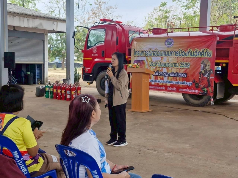 ร่วมกับกำนันตำบลโนนสูง ผู้ใหญ่บ้าน ผู้ช่วยผู้ใหญ่บ้าน สารวัตรกำนัน อาสาสมัครป้องกันภัยฝ่ายพลเรือน (อปพร.) จิตอาสา และประชาชนทั่วไป ดำเนินโครงการฝึกซ้อมแผนการป้องกันอัคคีภัย ประจำปีงบประมาณ 2569 ณ ลานอเนกประสงค์สำนักงานเทศบาลตำบลโนนสูง อำเภอยางตลาด จังหวัดกาฬสินธุ์