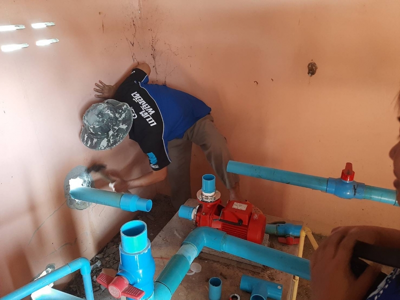 วันที่ 23 มีนาคม 2566 กองช่าง ลงพื้นที่เปลี่ยนปั๊มสูบน้ำประปาหนองสองห้อง และซ่อมแซมน้ำประปา หมู่ที่ 5